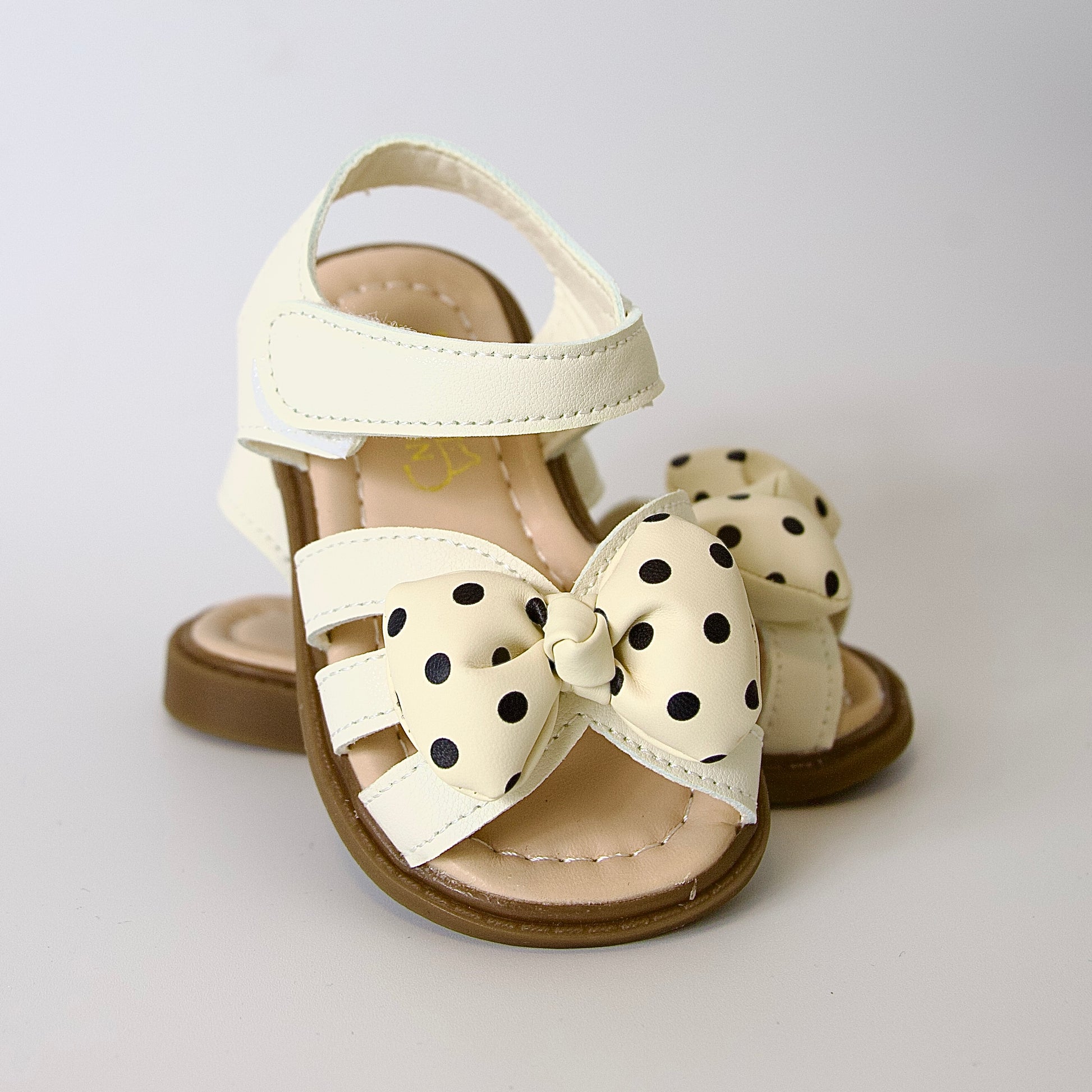 Ligereza y ternura Sandalias con moño grande en lunares — beige encantador