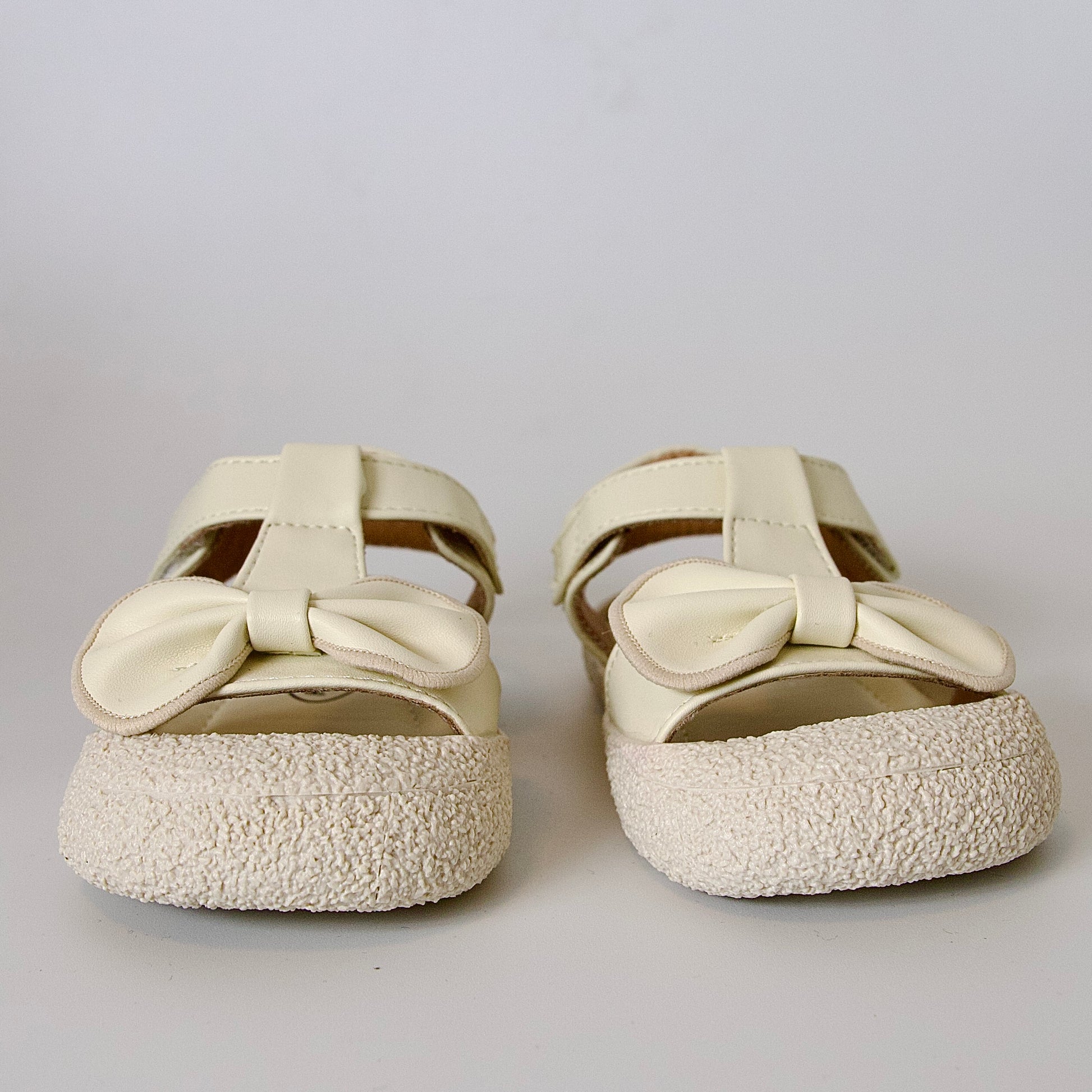 Sandalias beige con moño y punta cerrada — perfectas para el jardín y la arena