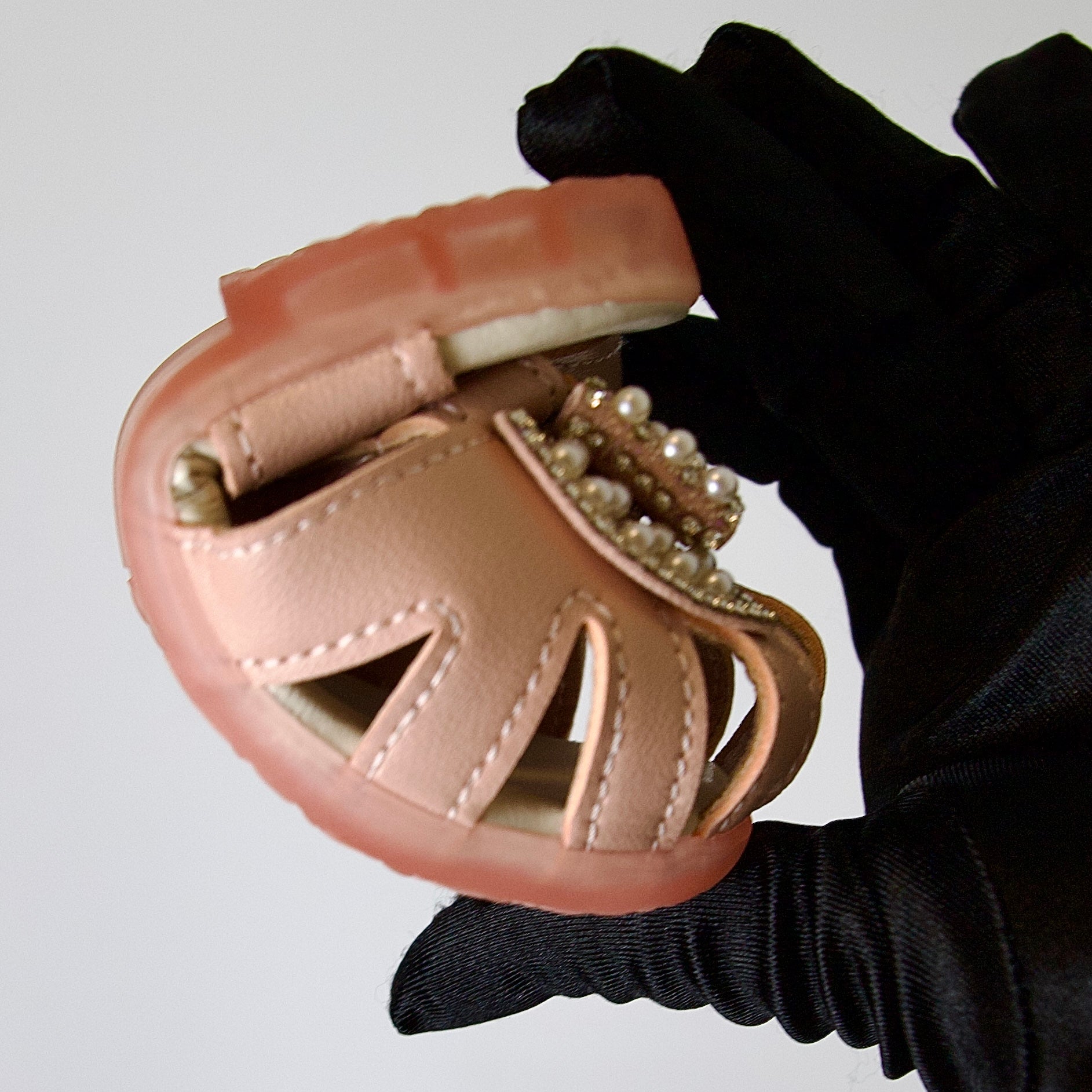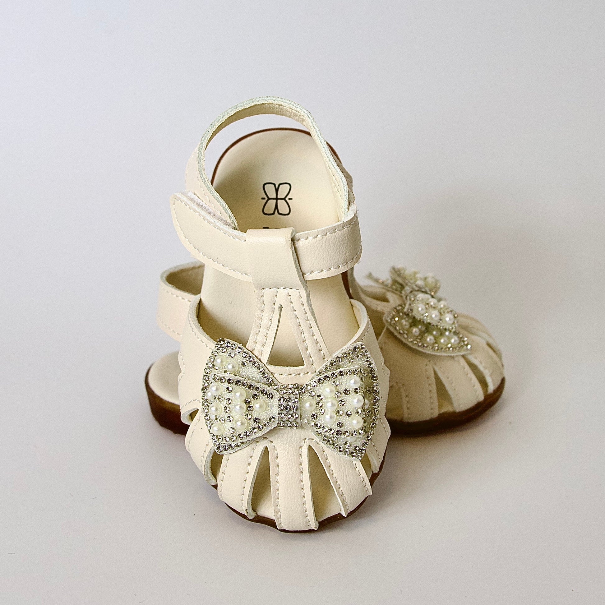 Estas sandalias con punta cerrada y un lazo con brillos son perfectas para el jardín infantil, paseos o uso diario.