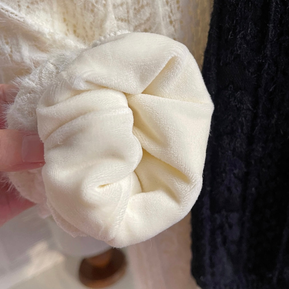Este acogedor polerón tejido con cuello alto y forro interior de polar es perfecto para los días fríos. Suave, elástico y muy cómodo — combina bien con faldas, pantalones o vestidos.