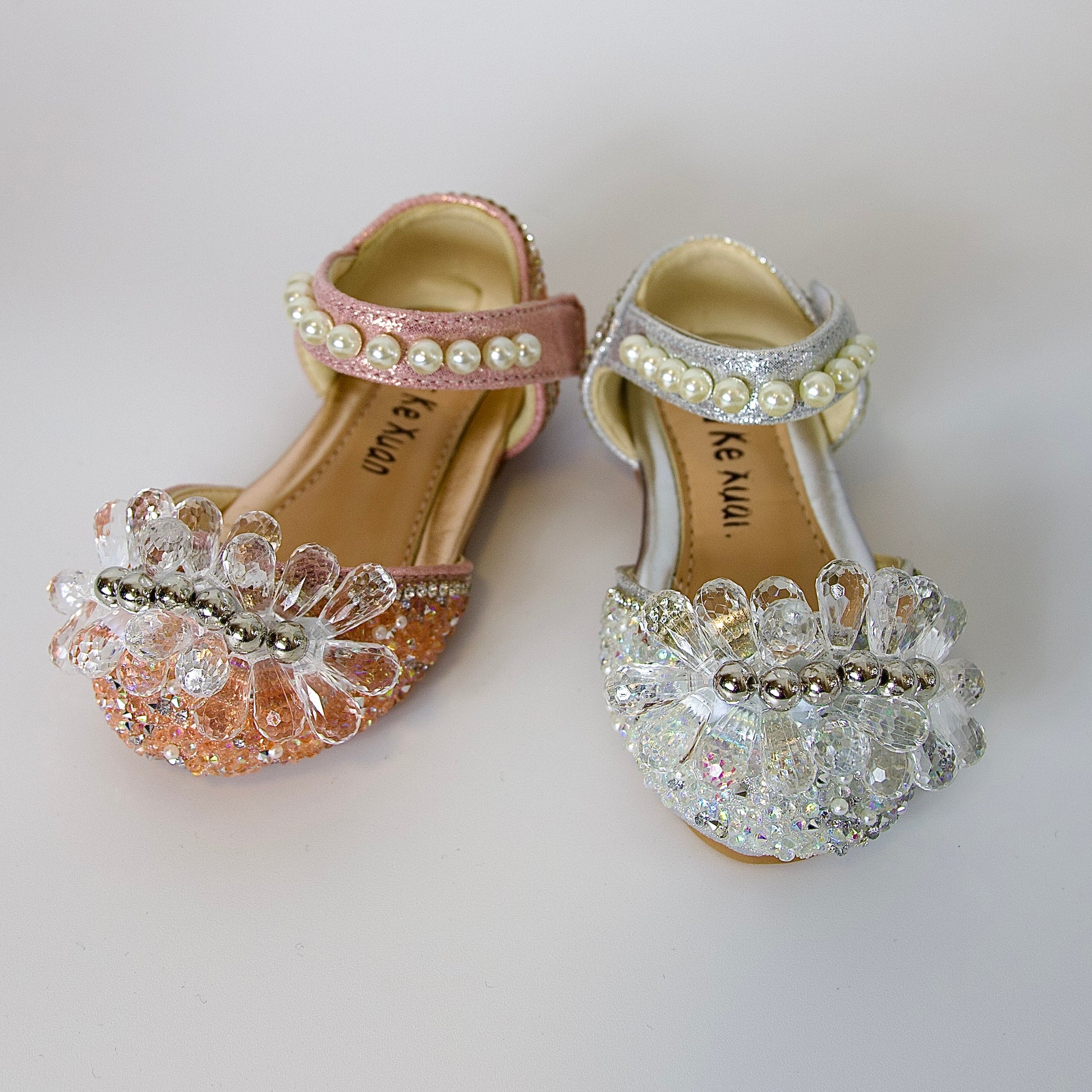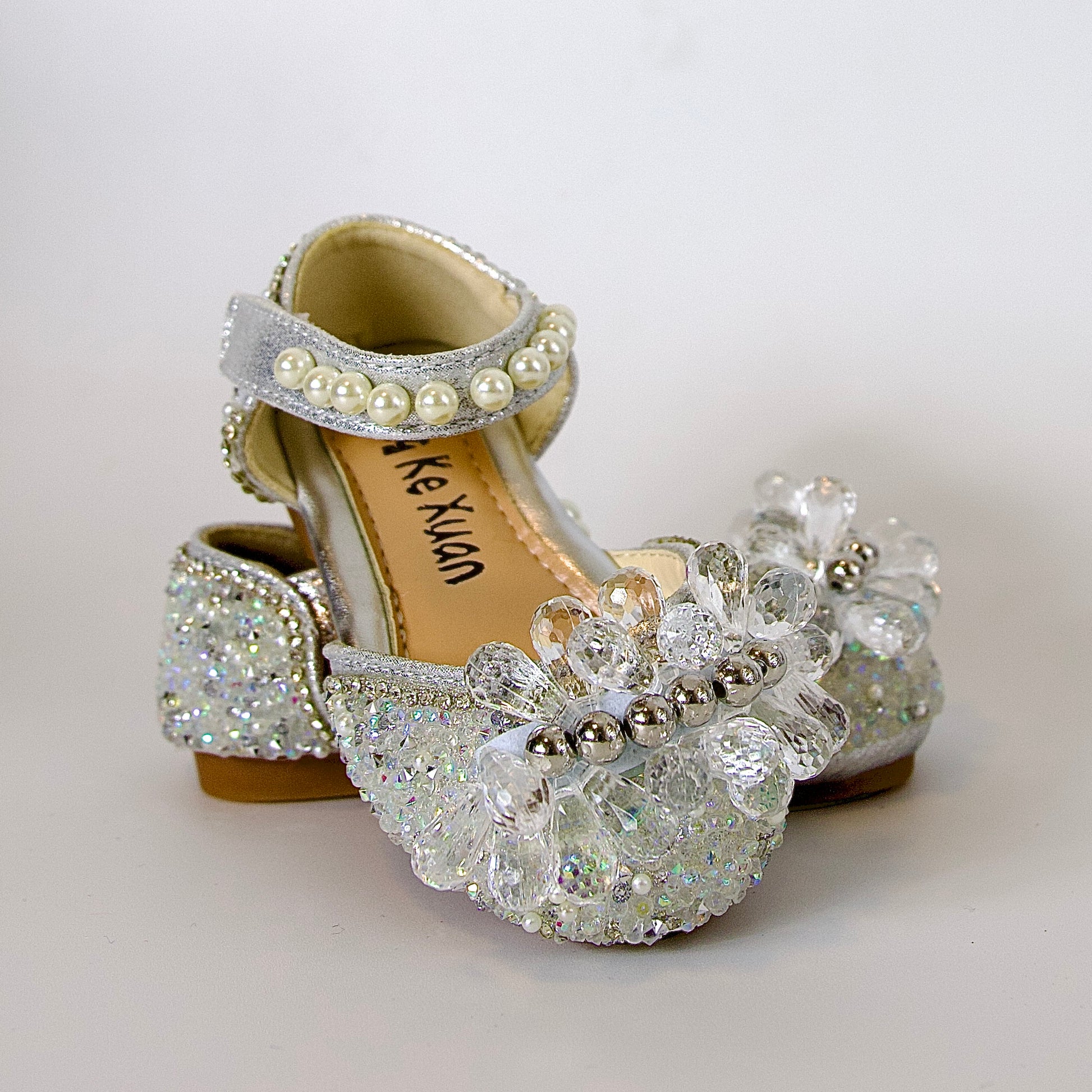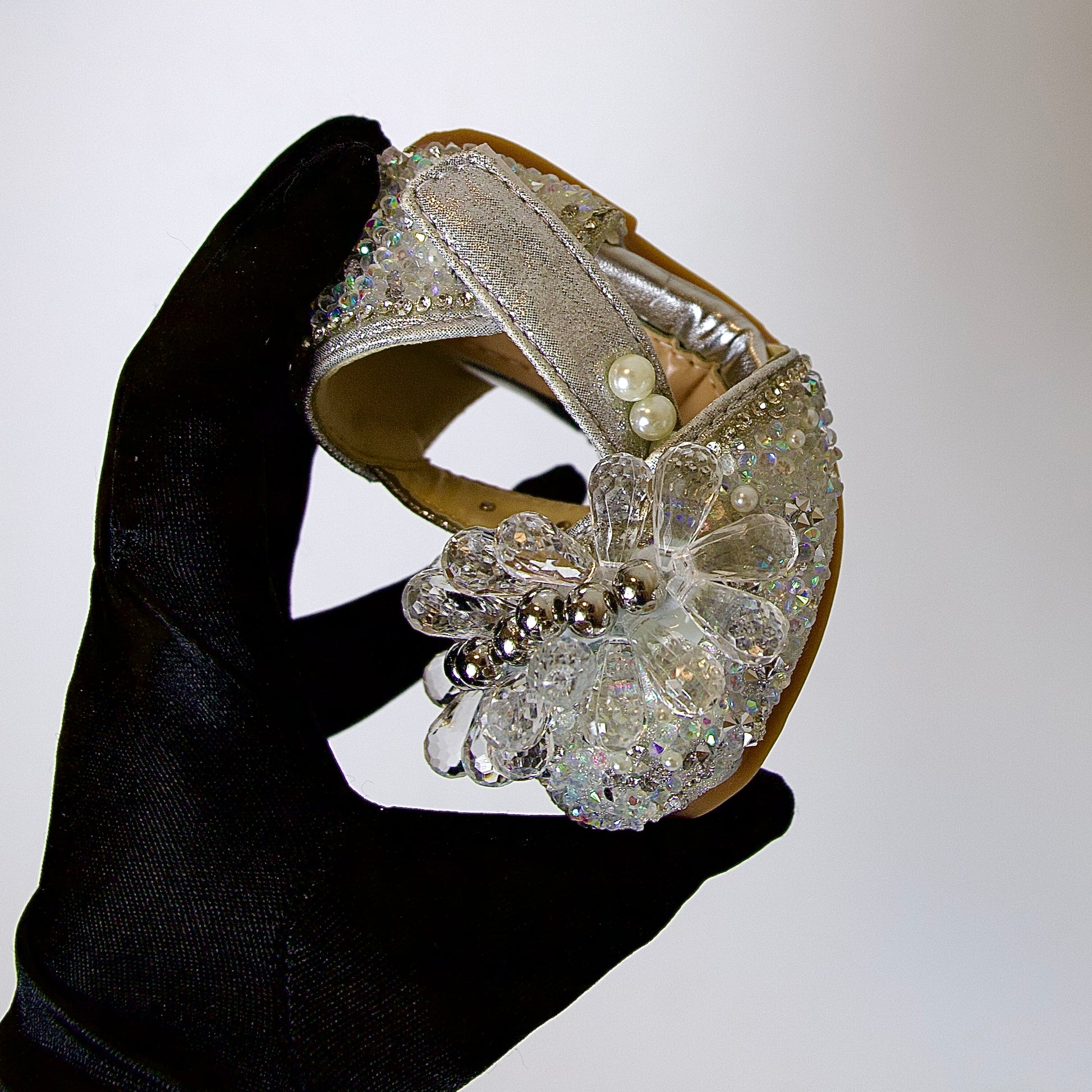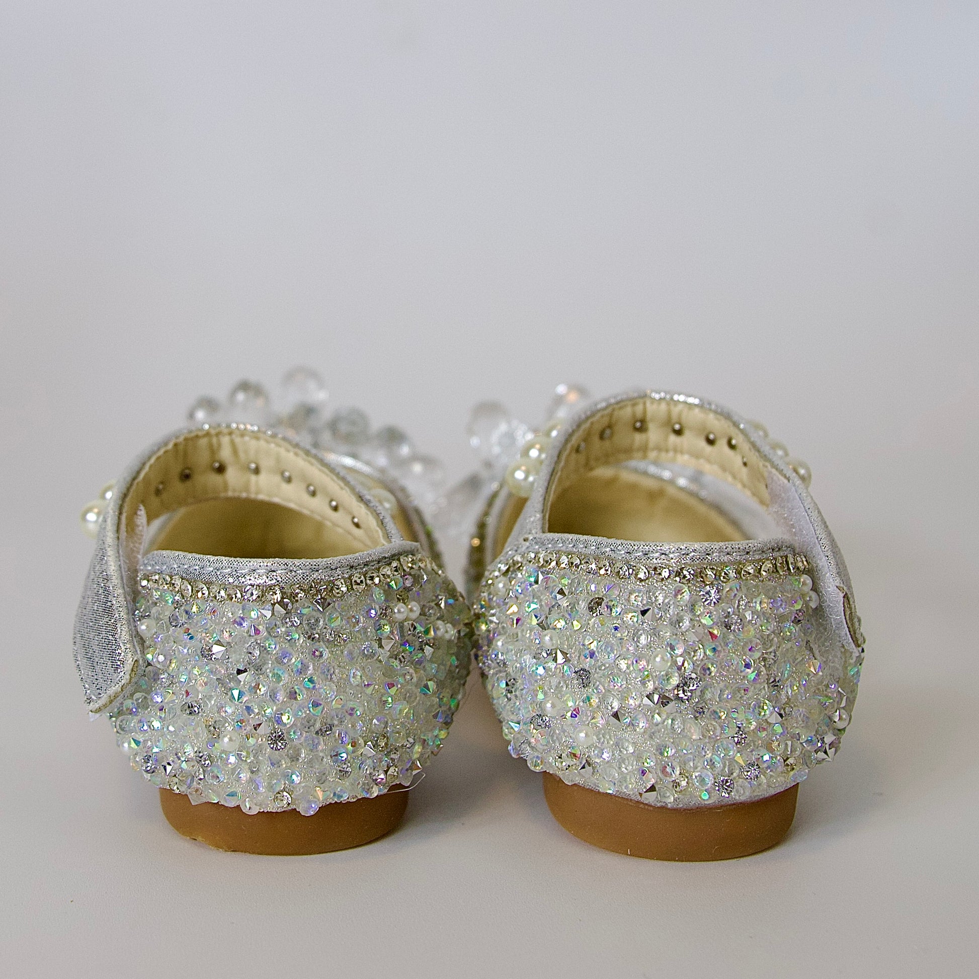 Zapatos festivos con cristales, perlas y cuentas plateadas